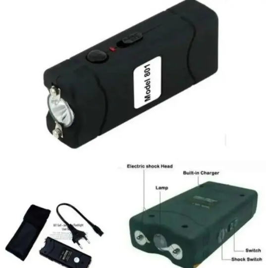 Self-Defence Electric Shock & LED Flashlight – শক্তিশালী ইলেকট্রিক শক এবং উজ্জ্বল LED লাইটসহ ডিভাইস। ব্যক্তিগত নিরাপত্তা ও জরুরি পরিস্থিতির জন্য আদর্শ, সাথে রয়েছে একটি Extra Carry Bag।